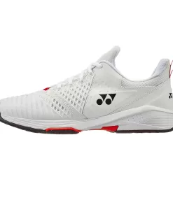 Ultraligeras y diseñadas para la velocidad, las Yonex Power Cushion Sonicage 3 combinan comodidad y sujeción para hacer posible todos tus movimientos en la pista. Esta tercera generación de las Sonicage presenta un nuevo upper diseñado para la comodidad y aumentar la durabilidad en los movimientos agresivos. La placa Power Graphite en la parte central de la zapatilla ayuda a maximizar la estabilidad al tiempo que reduce el peso de la misma. La mediasuela Power Cushion + ayuda a absorber los impactos y ofrece una pisada suave. Yonex también ha equipado estas zapatillas con su tecnología Roundsole para ofrecerte una transición más suave al esprintar por la pista. La suela de goma de gran durabilidad ofrece un alto nivel de tracción en todo tipo de superficies.